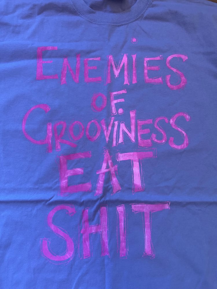 ‘Enemies’ purple t shirt with pink text. Wash cold and seperate first and then cold in the mix. Enjoy!