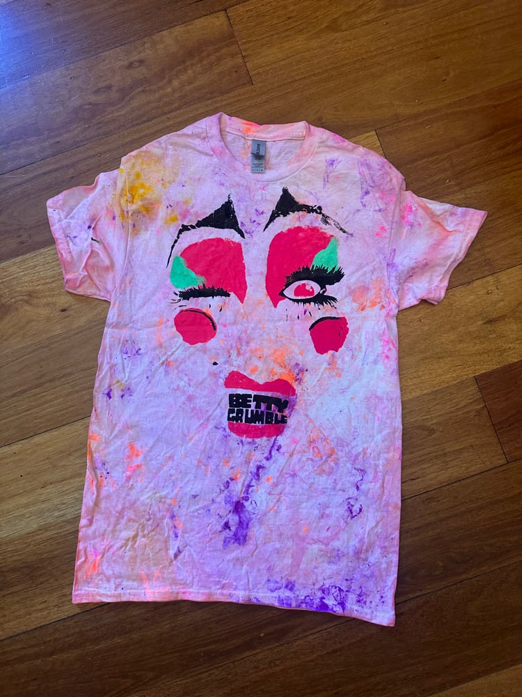 T Shirt Grumble Face Classic tie dye rainbow! Wash cold and seperate first and then cold in the mix. Enjoy!