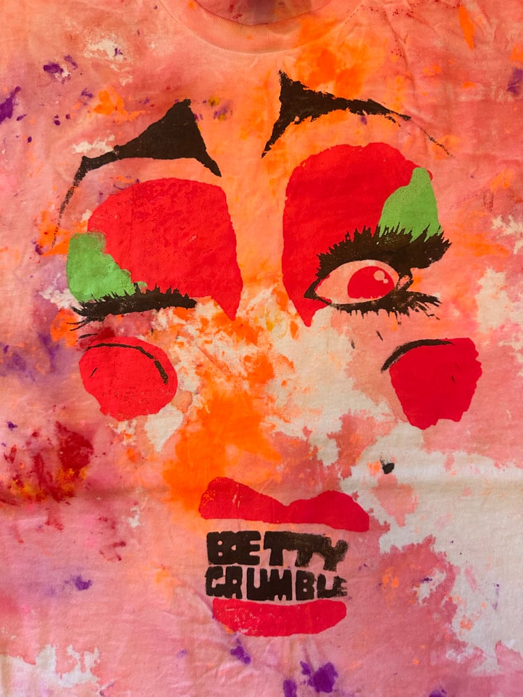 Grumble Face on T Shirt tie dye red, purple and orange (XL)