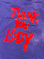 Lavender t shirt with orange uv active text. Each shirt is unique and hand screen printed by Grumble herself. First wash seperate on a cold cycle and then cold washes in the mix. Enjoy!
