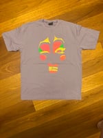 Purple shirt with Grumble Face with gold features. Cold wash seperately first then cold in the mix with others. Enjoy!